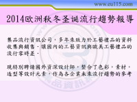 书名:2014年欧洲秋冬圣诞流行趋势报道 上传日期:2013-2-21 14:07:49